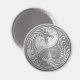 This stunning yin yang design features two stylized tribal dragons. Intricate lines and swirls decorate both sides of this traditional symbol creating a beautiful pattern. The two dragons flow from the bottom of the teardrop and have their mouths wide open in an aggressive stance. The dragons have the appearance of being engraved into a stainless steel background which creates an elegant look. This unique yin yang makes a stylish magnet design.