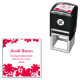 This self-inking stamp is shown with a red ink with a flowers at top and bottom of this 1 by 1.5 inch stamp. As always you can customize your colours, ink etc. Custom text lines for your title and address lines. Has crown at top. Customize this item or buy as shown.
