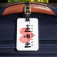 This luggage tag features a white background, a pink stamp-style heart, and beautifully handwritten style text. It's both fun and elegant at the same - just the luggage tag to set your suitcase apart from the crowd.