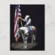 A gorgeous photograph of the cowgirl on a palomino & white Paint Horse holding the American Flag during the National Anthem at the 2014 Snake River Stampede.