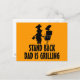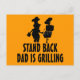 Silhouette of a man at a barbeque grill and caption Stand Back Dad is Grilling on funny t-shirts, aprons, hats, buttons, and more. Fun gifts for Father's Day and Birthdays.