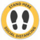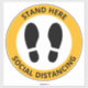 This modern design features the text "Stand here social distancing" in modern typography surrounding footprints. Perfect to keep your work and office space safe.
