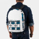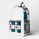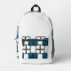 Elevate your everyday style with this Print Cut & Sew Backpack featuring a modern geometric pattern in ocean blue and white with subtle black accents