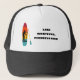 Add your own text to create a custom souvenir hat or personalized gift. This trucker's hat or baseball cap features an illustration of a SUP or stand up paddle board and paddle depicted in vibrant sunset colours with a silhouette illustration in black of someone paddle boarding. Beside the graphic is a spot to add your own message in bold black lettering.