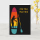 Create a personalized card for birthdays or any occasion. This greeting card is perfect for stand up paddle boarders. It features an illustration of a SUP or stand up paddle board and paddle depicted in vibrant sunset colours with a silhouette illustration in black of someone paddle boarding. The graphic is set against a black background. There's a spot to add your own message on the front and the inside of this card.