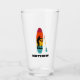 Create a personalized gift that's perfect for stand up paddle boarders. This pint glass or pub glass tumbler features an illustration of a SUP or stand up paddle board and paddle depicted in vibrant sunset colours with a silhouette illustration in black of someone paddle boarding. Below the graphic is a spot below for adding a name in bold black lettering.