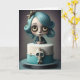 Cute style birthday card, cartoon girl with large birthday cake decorated with a skull, something a little different for you special someone.