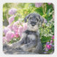 Standard Schnauzer Puppy in a Flowering Garden - Square Sticker