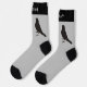 Sitting canary bird silhouette. Custom background colour. Custom top stripe colour. Custom text on each sock.