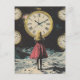 A girl with long blonde hair stands with her back to the viewer looking at a surreal landscape filled with gold pocket watches AI generated fantasy art