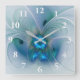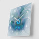 Standing Ovations, Abstract Blue Turquoise Fractal Square Wall Clock