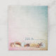 Seashells place cards with optional "table number" text. Standing cards have a seashell border and pink to blue graphic fade background. Use the table number text for escort cards. These will direct guests to their table. Hand write name, or names on the front. Remove the "table no." wording to use as place cards. Underneath the colour is solid sand tan. This design matches the Living Seas wedding collection.