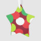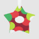 Deck the halls in your own funky fashion with this cool star shaped Christmas tree ornament! Super cute tree ornament feature a funky oval pattern in shades of lime green , bright red, white, and Kelly green, against a dark red background. Happy Holidays!