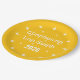 Ring in the New Year with style! This festive paper plate features a bright yellow background adorned with white stars — some carefully placed to mark the positions of clock numbers, symbolizing the countdown to midnight. At the center, a beautiful Armenian inscription reads “Happy New Year 2026.”