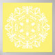 This white mandala sits on a calm yellow background. The colours are happy and peaceful. Part of the Erghenn Mandala Collection.