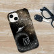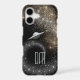This unique phone case features a swirl of silver and gold stars against a black universe. Coming out of the star swirl is a silver UFO. The star swirl ends at your two letter monogram, which is also in silver. Mysterious and fun!