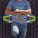 Digital abstract image with a star design in yellow, pink, turquoise and purple by Objowl. As well as skateboards this design is also available on most other products. If you need help or would like me to make changes to this or any other item email me. objowl at gmail.com. No obligation just pleased to be of service.