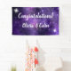 Ajoutez cette étoile - Bannière Mariage à vos accessoires de réception de mariage. Conçu dans des tons clairs et sombres d'étoiles violettes et blanches scintillantes, ce grand bandeau peut être personnalisé avec votre texte préféré en utilisant notre modèle facile. Assurez-vous de voir les pièces correspondantes dans cette Star Light - Collection Faire-part de mariage. Bon appétit !