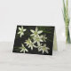 This fine art photography Christmas card features the lovely spring perennial garden plant known as Star of Bethlehem (Ornithogalum umbellatum). Each flower has six white petals and a yellow center. They are set on a dark, almost black background. More flowers are scattered inside. The text can be customized or removed.