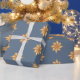 This traditional Christmas gift wrap features the star of Bethlehem on a dark navy background.