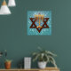 Frame this stunning art print and give it as a gift to newlyweds, a bar mitzvah or a loved one. The Magen David (Star of David) is featured with a golden menorah on a iridescent background of teal vines.