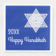 Hanukkah themed paper napkin. Blue background with a beautiful crystal Star of David ornament in the upper corner. The words "20XX" and "Happy Hanukkah" are written in festive font underneath. The "XX" should be changed to whatever year you want. Size is optional, so although this shows a large napkin, you can swap it out for a cocktail or luncheon size if you choose.