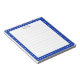 Star pattern on royal blue frame on white lined Notepad. Text can be personalized. Good for everyone! Aim for the stars!
