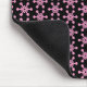 A mouse pad with an attractive pattern made up of a star or snowflake asterisk type motif.