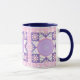My original digital designed artwork is featured on this pretty pink mug, consisting of a vintage Star quilt pattern, processed in pink and purple tones and given a slight distressed appearance. The handle and inside of the cup are a navy-blue tone to complement the artwork.
