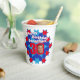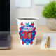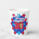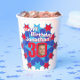 Personalize these bright 30th birthday party paper cups with your own birthday name and photograph in the 0 of 30 on both sides one for your photo now and one from your past. Fun star pattern and text and personalized photo design in bright red, cyan and royal blue. Ideal for using at a thirtieth birthday party. Other matching items and colour options are available. © Original graphic art and design by Sarah Trett for www.mylittleeden.com