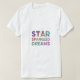 This classic white t-shirt features the text "Star-Spangled Dreams" in a bold, distressed multicolor. Each word has a unique texture and a different colour, giving the design a vintage feel.