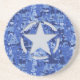 A stencil style vintage star decal graphic on a vibrant navy blue digital camouflage decor.