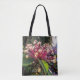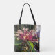 The beautiful image on this Tote Bag is an original photograph by ZoeSPEAK of a flowering clerodendrum bush. This variety is called Starburst, because each bloom is made up of magenta stems bursting out, with little white flowers at their tips. The Starburst is surrounded by a cluster of green leaves and a tropical green background. This plant blooms at the end of winter, more reliable than a groundhog.