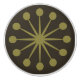 This graphic design, reminiscent of Mid Century Modern style of the 20th century, features a starburst motif  in sophisticated, earthy colours.