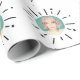 This wrapping paper is fun and playful with a repeating pattern of simple round photo starburst custom photo centers. Your wrapped gift will be the hit for any event!