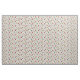 Mid-century modern starburst pattern with rectangles and black abstract lines. Colours are of the time period in red, lime green, grey and teal on a light brown background.