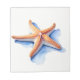 An illustration of an orange starfish that seems to be relaxing on its blue silhouette. Watercolor drawing.