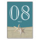 Starfish and burlap printed table number card to compliment our Beach Amore' invitation set in Ocean Teal, can be personalized and ordered individually. All parts of this card are printed. There is no real burlap or shells attached.