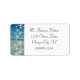 Medium size, custom address label decorated along the edge with crystal clear ocean water and a bunch of white starfish. Template text is black, handwritten script.