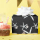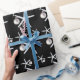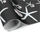 Black Christmas wrapping paper with white sea stars and tree ornaments design. Fun sea stars, hung with little ball ornaments, make a pattern over high quality, heavy duty gift wrap on a roll.