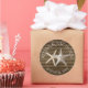 Old Boat Wood Planks and Starfish rustic beach wedding favour sticker with bride and groom's names and wedding date.