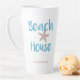 Blue and coral typography Beach House coffee latte mug that you can personalize with your name, business or date of establishment. Design from Jenn's Emporium.