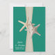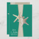 Pretty starfish and burlap design create a unique look for your beach or destination wedding. Pretty Ocean green and natural ivory colours offer a unique look. This invitation is entirely printed. There is no real burlap or starfish attached.
