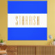 This fun seaside design features a wide white horizontal centre stripe with tall, golden brown STARFISH text that can be personalized. The wide top and bottom stripes are vibrant bright royal blue.