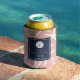 Cute can coolers for a Florida beach themed bachelorette party getaway in a coral pink and white starfish and sand dollar design. Customize with the bride-to-be's name and the location of your bachelorette party, weekend or getaway.