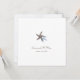 Starfish couple beach wedding invitations. Square cards with two sea stars on the front with names of the couple and wedding date. All invitation text is on the back, in easy to use templates. The background is covered in white sea stars behind the text which is brown. Upgrade the paper as you wish.