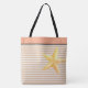 Ce sac fourre-tout est présenté dans une bande de sable mignon et de couleur jaune/Lt. Orange starfish design et une bande de coordination orange au sommet avec poignées de bracelet noir. Grande taille affichée. Customisez cet objet ou achetez tel quel.