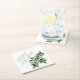 Christmas party paper drink coasters with starfish and holly design. The angled wording and design works for a few coaster shapes. White coasters with script “Merry Christmas” in green and white sea stars among sprigs of holly with red berries. Perfect for a home party, holiday office party, or special event with a coastal theme.