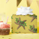 Sea stars Christmas wrapping paper on a roll in golden yellow colour. Quality paper has a big pattern of realistic brown starfish wrapped in green holly with red berries. This paper comes in custom lengths.