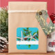 Autocollants cadeau de Noël bleu Aqua avec étoiles de mer et conception sainte. Deux étoiles de mer blanches, des feuilles verts aux baies rouges composent ce design. Une bande blanche au bas des autocollants carrés contient le texte "pour" et "de". Choisissez parmi deux tailles d'autocollants, mais s'il vous plaît choisir la finition mate pour la meilleure écriture des noms.